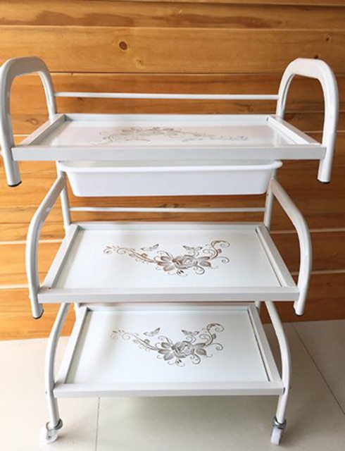 Xe đẩy Spa 3 tầng mặt kính hoa văn có khay