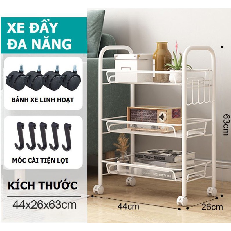 Xe đẩy thiết kế 3 tầng khoa học giúp tiện lợi trong để đồ đạc