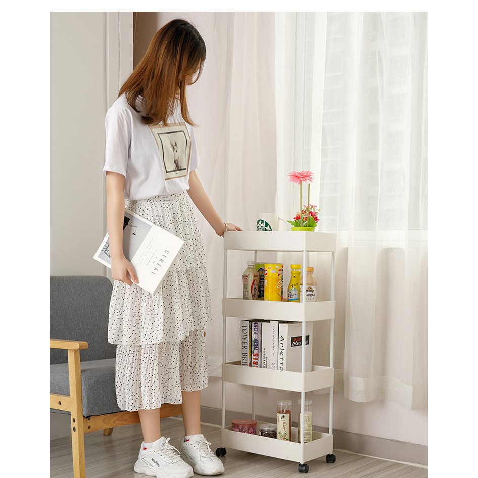 4 bánh xe được tích hợp cùng kệ giúp cho việc di chuyển trở lên đơn giản hơn.