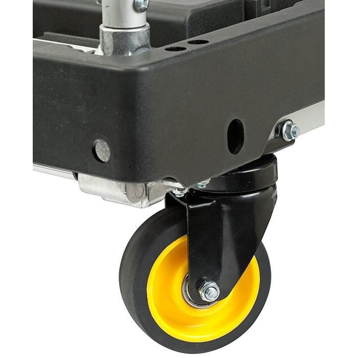 - Xe đẩy tay Stanley SXWTC-PC507 có mặt đế được làm bằng Nhôm tay đẩy được trang bị miếng nhựa bảo vệ và tay nắm cao su thêm chắc chắn.Sử dụng 4 bánh với kích thước 10,1x4cm giúp xe đẩy có thể di chuyển nhẹ nhàng.Thiết kế tay đẩy dễ dàng gập gọn khi không sử dụng giúp cất giữ gọn gàng hơn, giúp tiết kiệm không gian và diện tích. Nhờ toàn bộ đều sử dụng chất liệu cao cấp nên xe có thể chịu lực tốt khi di chuyển liên tục trong thời gian dài.