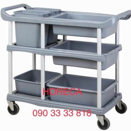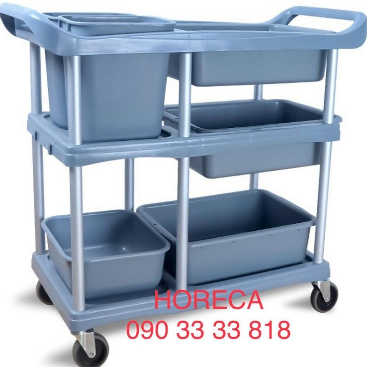 xe đẩy thu dọn bát dĩa bằng nhựa 3 tầng [đã bao gồm xô, thau đi kèm] , thu gom chén, thức ăn thừa