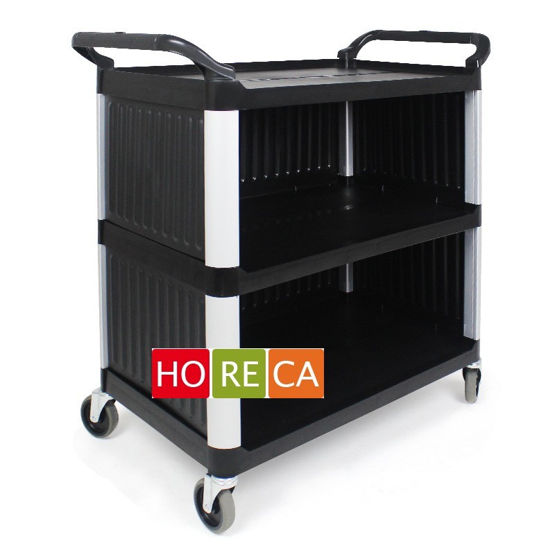 Giới thiệu xe đẩy thức ăn 3 tầng có vách ngăn bằng nhựa, xe đẩy phục vụ, dọn chén bát