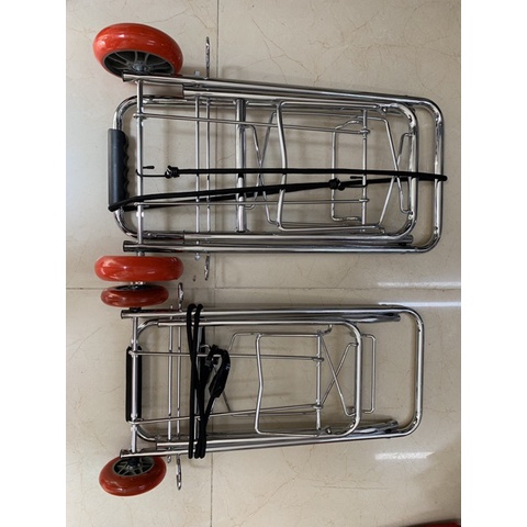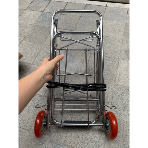 - Xe được làm bằng inox, kèm giỏ inox gấp gọn bền đẹp, inox dày dặn chắc chắn, được đỡ bởi 2 bánh xe giúp di chuyển dễ dàng hơn