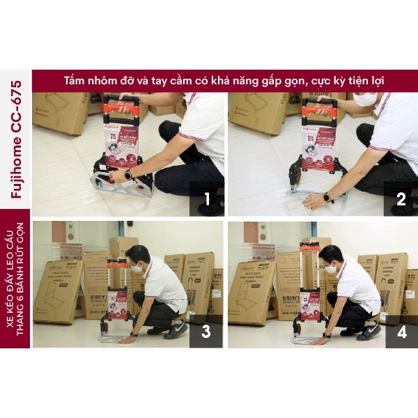XE ĐẨY KÉO HÀNG LEO CẦU THANG 6 BÁNH GẤP GỌN FUJIHOME CC-675