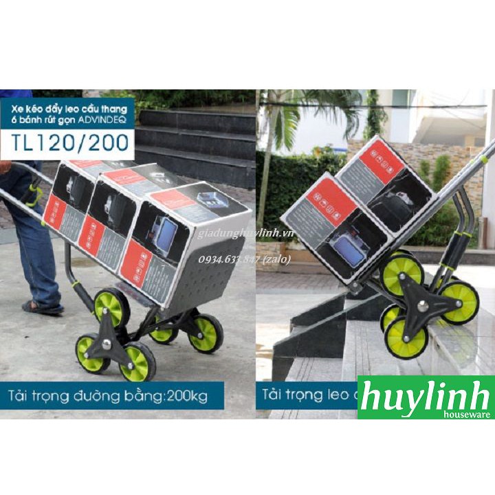 Xe kéo đẩy hàng leo cầu thang Advindeq TL-120/200 là dòng sản phẩm cực kì tiện lợi cho việc vận chuyển hàng hóa ở những tòa nhà nhiều tầng hay chung cư thuận tiện cho cả phụ nữ và người già.Huy Linh phân phối và bảo hành chính hãng tại Advindeq