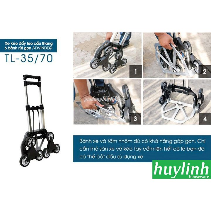 Nhà cửa & Đời sống > Dụng cụ & Thiết bị tiện ích > Xe đẩy || Xe kéo đẩy hàng leo cầu thang rút gọn Advindeq TL-35/70Còn hàng