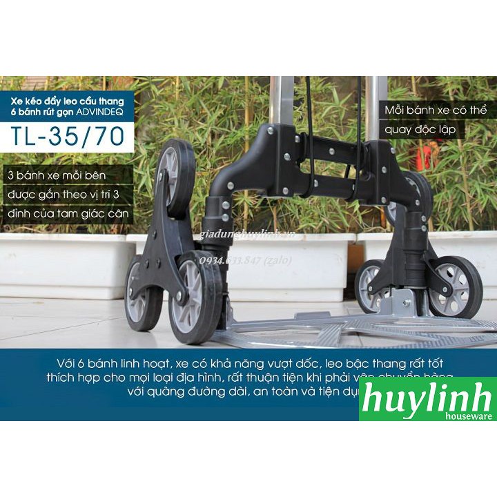 Xe kéo đẩy leo cầu thang Advindeq TL-35/70 trọng tải leo cầu thang 35 kg, đường bằng 70kg được làm bằng hợp kim nhôm có độ bền cao, trọng lượng xe 3.5kgHuy Linh phân phối và bảo hành chính hãng tại Advindeq Việt Nam