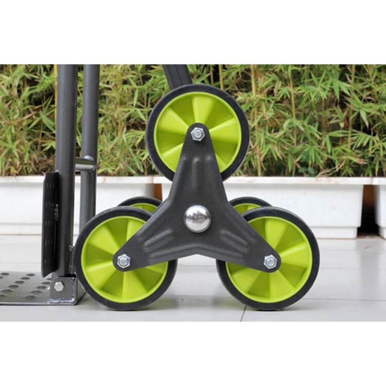 Sản phẩm có 6 bánh được thiết kế trên cùng 1 trục theo kiểu hình tam giác, mỗi bánh hoạt động theo phương thức độc lập. Với dưới mỗi bánh xe làm bằng nhựa cao cấp có độ ma sát cao, bám rất chắc vào sàn nhà, sàn bậc cầu thang không bị trượt. Khi xe leo lên hoặc đi xuống cầu thang sẽ rất dễ dàng.