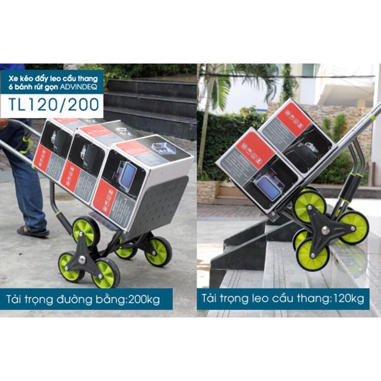 Nhà cửa & Đời sống > Dụng cụ & Thiết bị tiện ích > Xe đẩy || Xe Kéo Đẩy Leo Cầu Thang 6 Bánh Rút Gọn ADVINDEQ TL-120/200 (120kg)Còn hàng