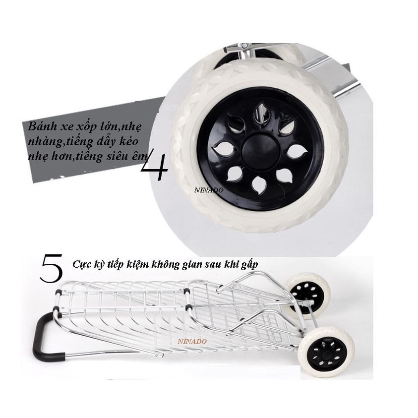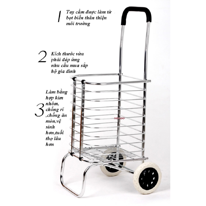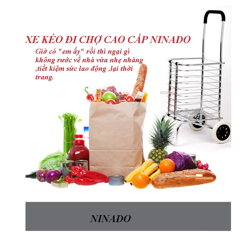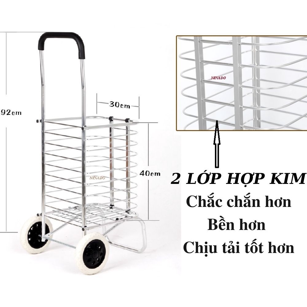 Xe kéo đi chợ có giỏ hàng gấp gọn siêu đẹp 2 Lớp ống Hợp Kim bền hơn khỏe hơn NINADO 601