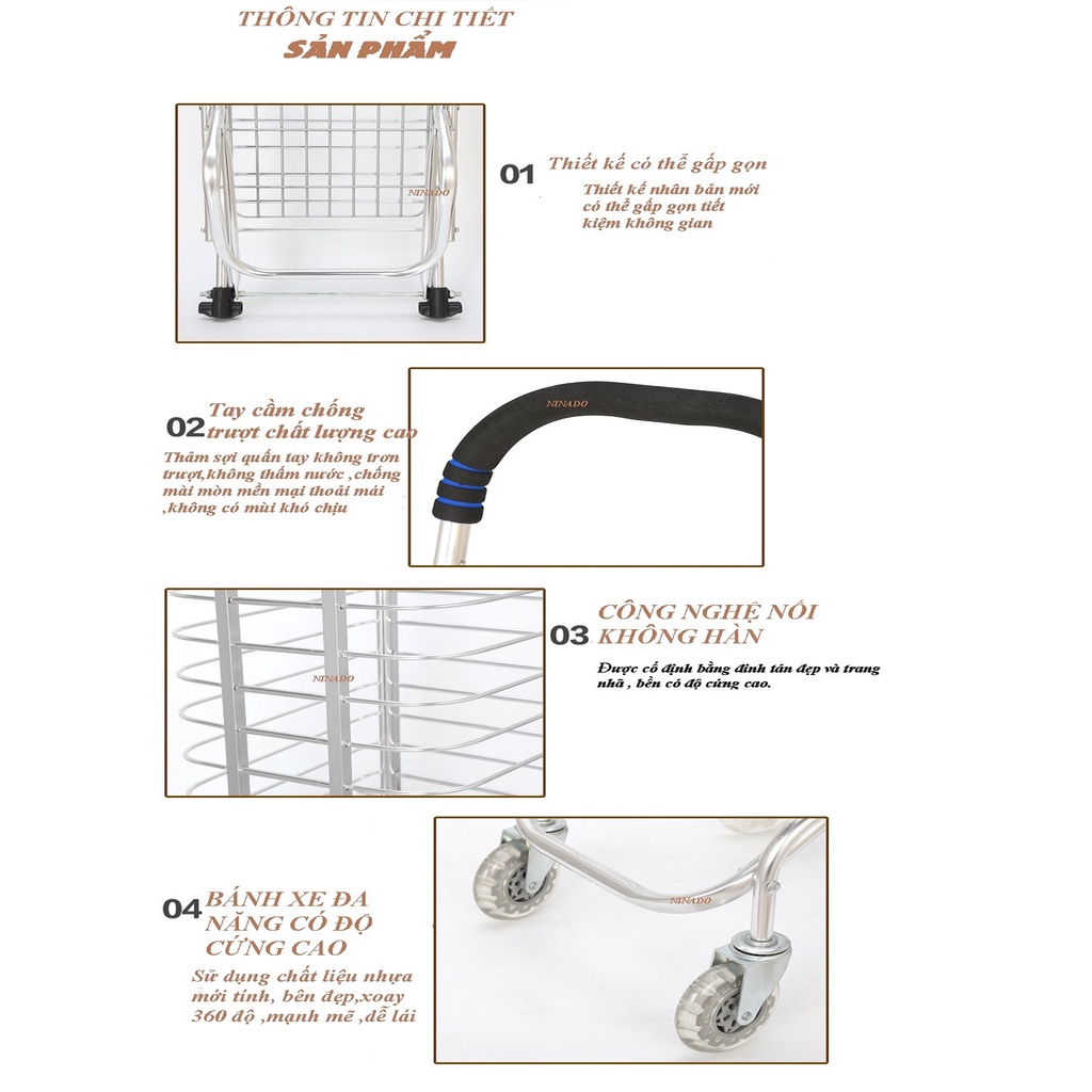 Lưu ý : KHÔNG CÓ TÚI KÈM THEO - xe đi chợ leo cầu thang giỏ gấp gọn để được đồ vật to hơn xe