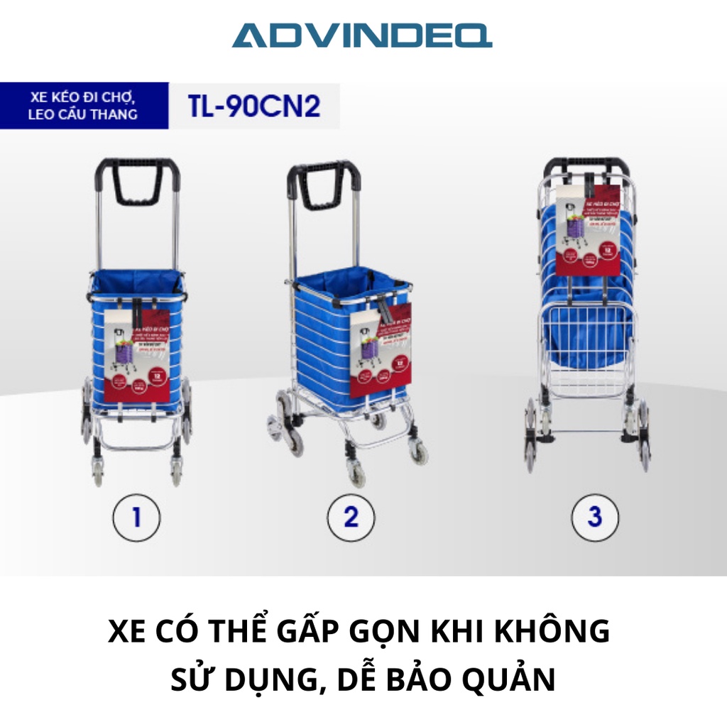 Nhà cửa & Đời sống > Dụng cụ & Thiết bị tiện ích > Xe đẩy || Xe kéo đi chợ, leo cầu thang ADVINDEQ TL-90CN2, chất liệu inox không gỉ công nghệ Đài Loan cao cấpCòn hàng
