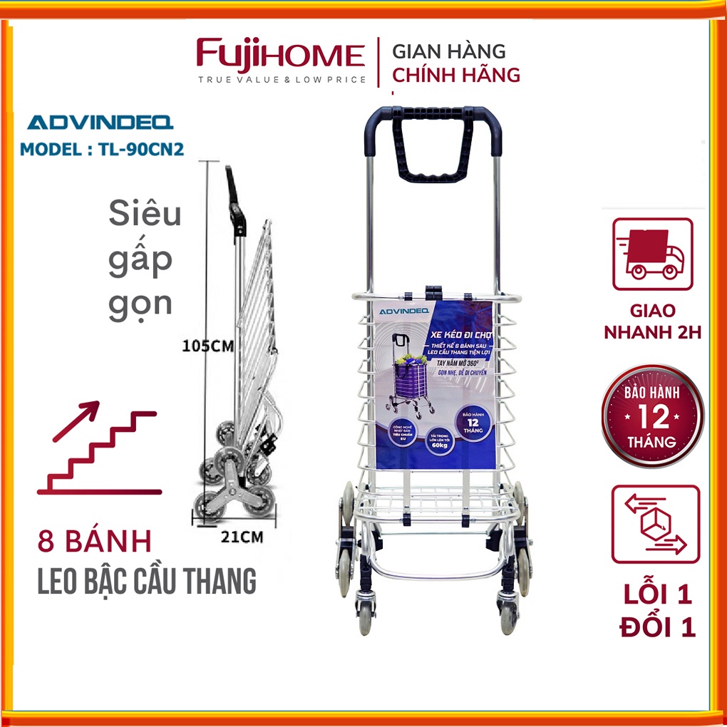 Nhà cửa & Đời sống > Dụng cụ & Thiết bị tiện ích > Xe đẩy || Xe kéo đi chợ siêu thị xếp gọn leo cầu thang 60kg 8 bánh đa năng ADVINDEQ TL-90CN2,xe đẩy có giỏ mini gấp gọn gia đìnhCòn hàng
