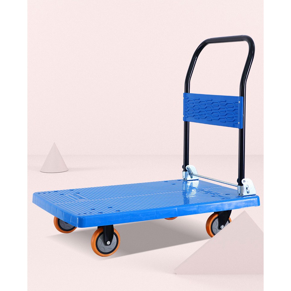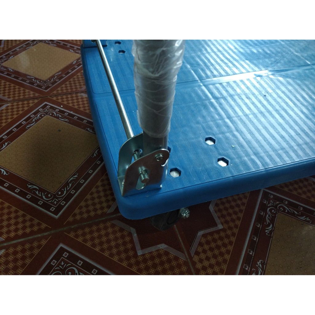 HƯỚNG DẪN SỬ DỤNG XE ĐẨY HÀNG AN TOÀN, HIỆU QUẢ: Đạp thanh khóa, kéo tay đẩy lên là có thể sử dụng ngay, Dễ dàng gấp tay đẩy xuống và cất xe đi khi công việc hoàn tất. Khi cần đẩy hàng, để xe ở gần thùng hàng rồi nhấc thùng hàng lên sàn xe. Dùng chân đẩy nhẹ phần đuôi xe đồng thời kéo tay cầm nghiêng về đằng sau. Lúc này, bạn đã có thể thoải mái đẩy hàng tới nơi cần thiết mà không mất quá nhiều sức lực. Thường xuyên tra dầu và bôi trơn định kỳ cho xe đẩy hàng. cuốn theo bánh xe, Phát hiện những hỏng hóc, vết nứt trên xe kịp thời để đảm bảo an toàn khi sử dụng.