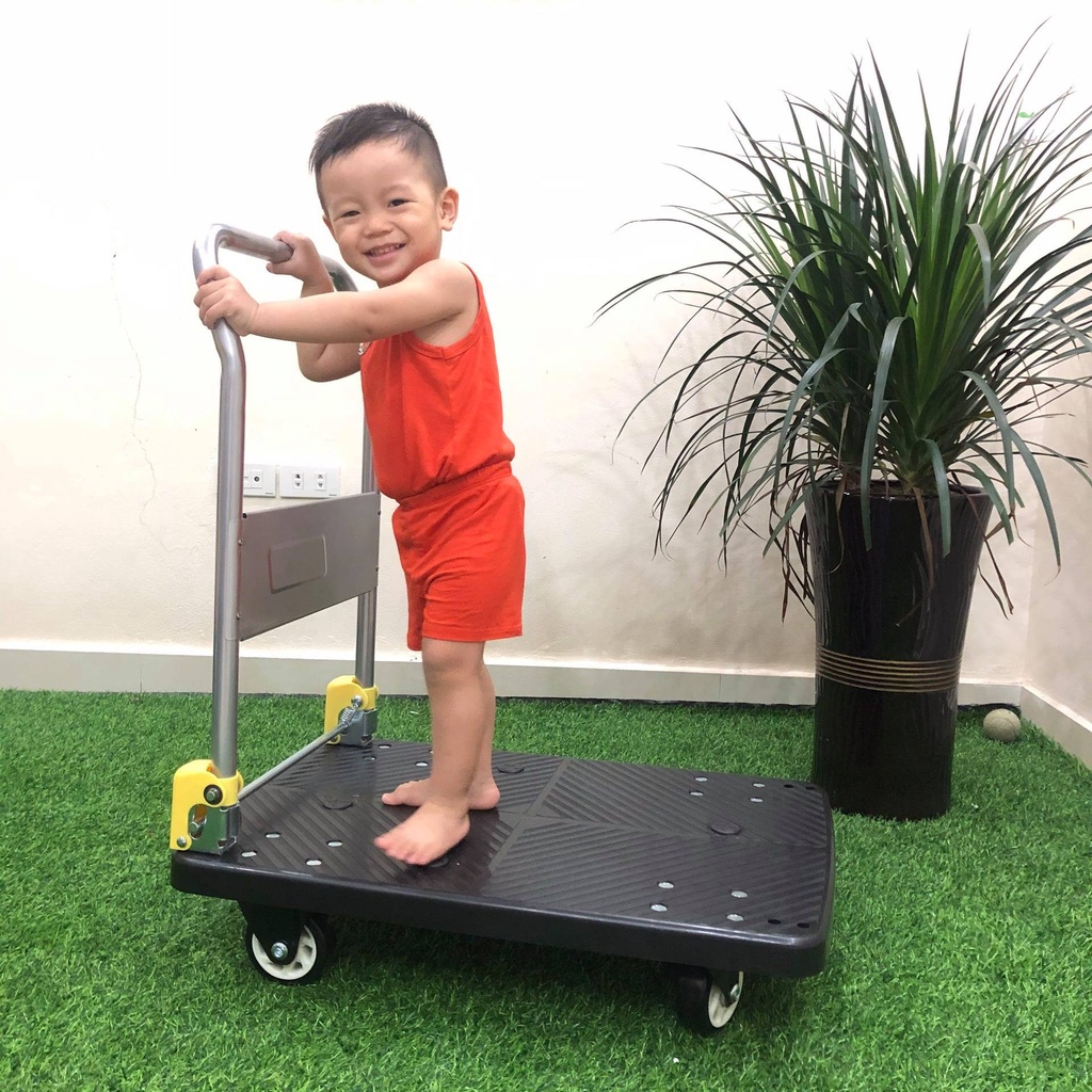 - Xe đẩy được thiết kế tay thuận lợi việc chở hàng hóa và có thể gấp gọn
