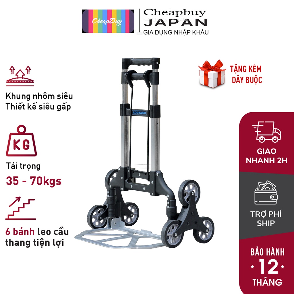 - Xe Kéo Đẩy Leo Cầu Thang 6 bánh rút gọn ADVINDEQ TL-35/70 trọng tải leo cầu thang 35 kg, đường bằng 70kg được làm bằng hợp kim nhôm có độ bền cao, trọng lượng xe 3.5kg cực nhẹ so với các sản phẩm xe đẩy hàng sắt thông thường trên thị trường.