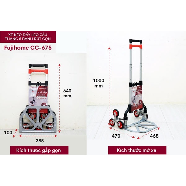 2. XE KÉO ĐẨY LEO CẦU THANG 6 BÁNH RÚT GỌN FUJIHOME CC-675
