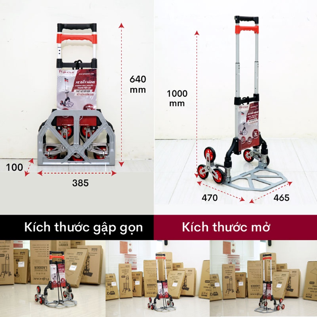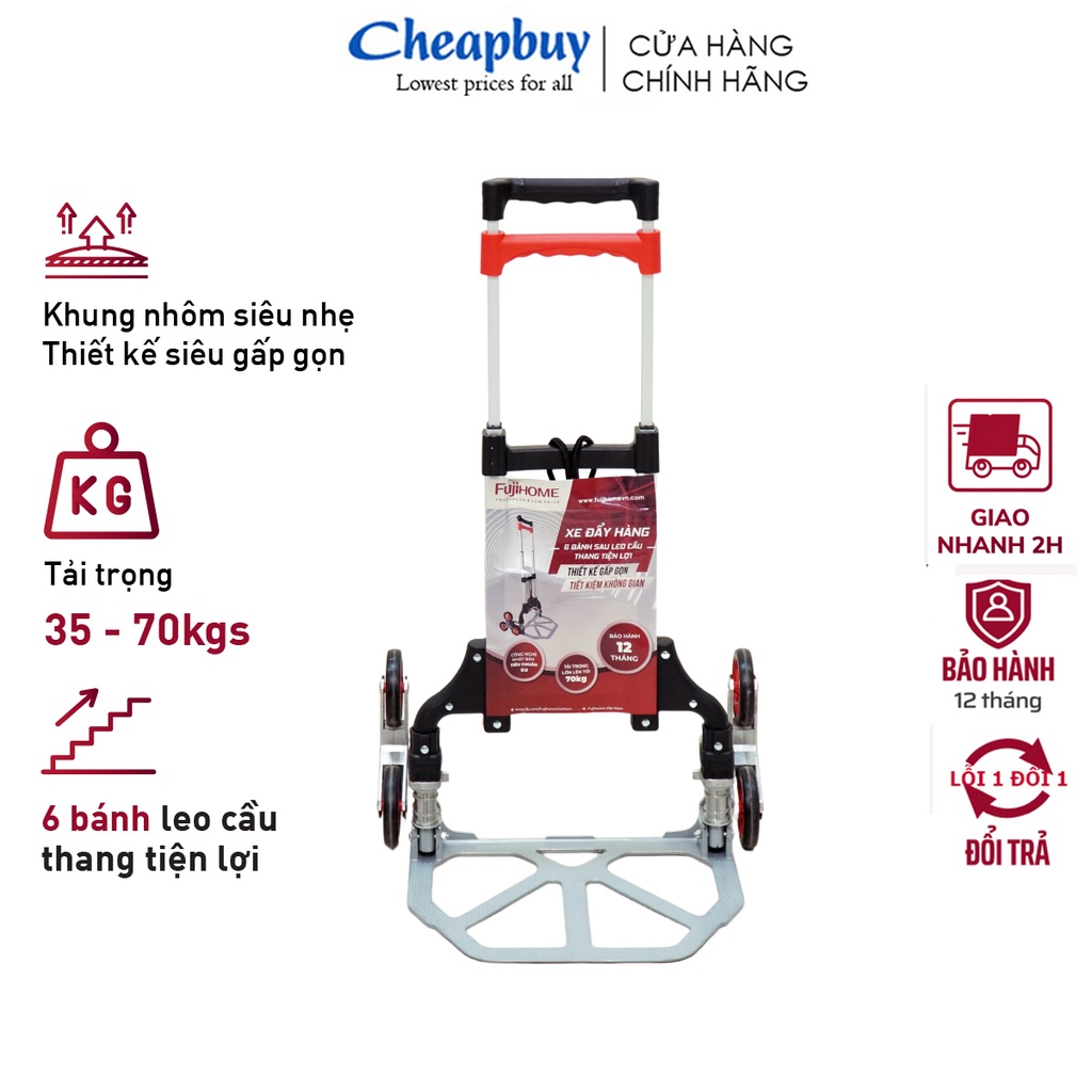 Nhà cửa & Đời sống > Dụng cụ & Thiết bị tiện ích > Xe đẩy || Xe kéo hàng leo cầu thang 6 bánh rút gọn chở 35-70kg nhập khẩu FUJIHOME CC-675Còn hàng