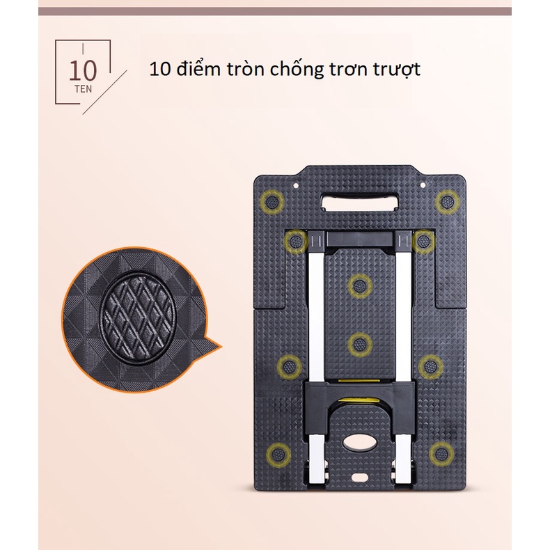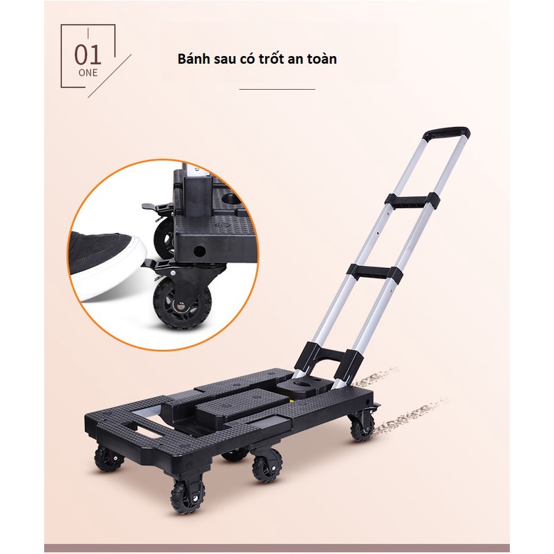 Giảm tiếng ồn Tay cầm có thiết kế linh hoạt để tránh va chạm, chuyển giữa đẩy & kéo, gấp gọn. Khả năng chịu lực lớn, có thể chịu được sức nặng của 1 người trưởng thành. Có thiết kế điểm trống để chằng dây 1 cách thuận lợi và chắc chắn. Với chiếc xe kéo hàng gọn nhẹ chịu tải tốt này chắc chắn sẽ làm quý khách hài lòng