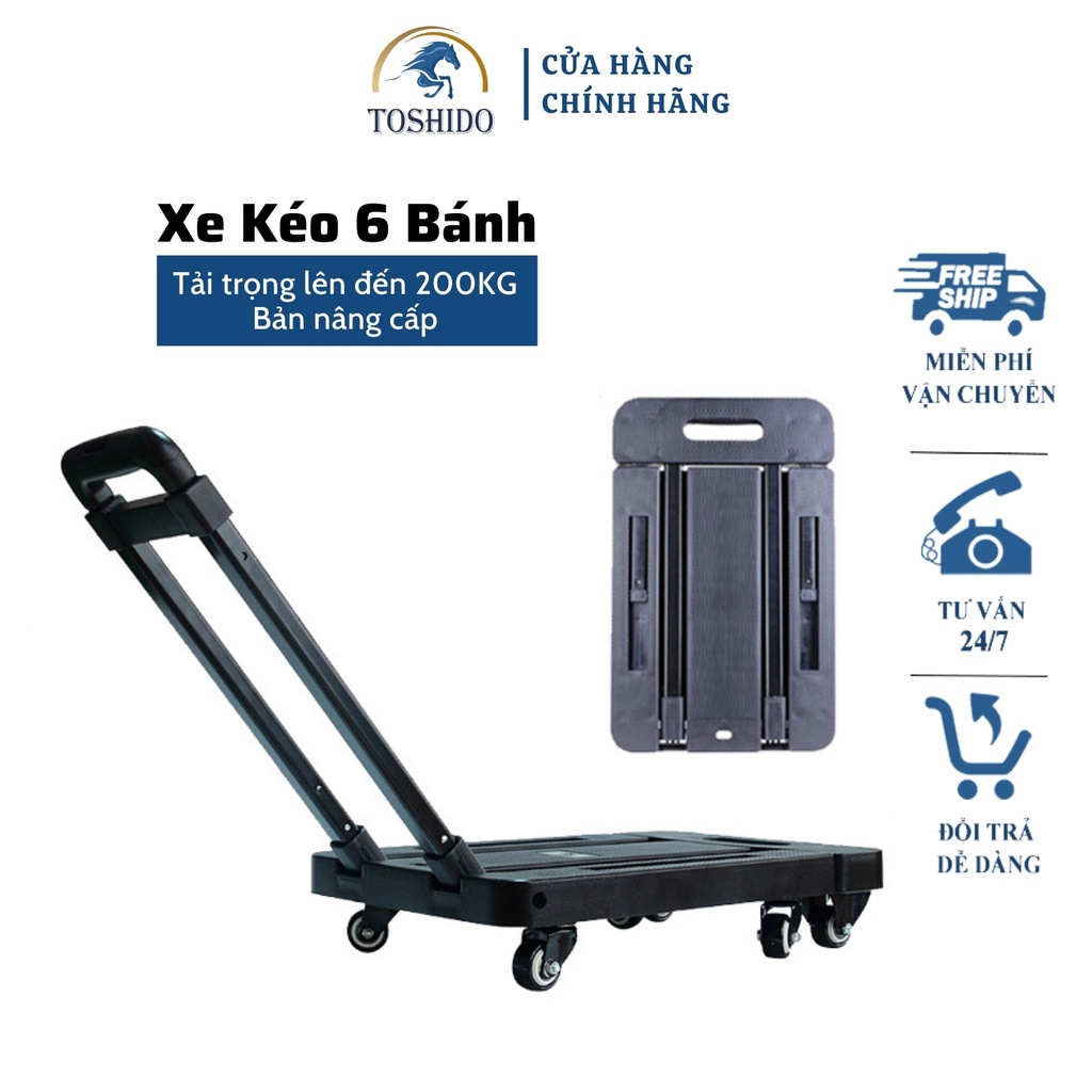 Xe Kéo Hàng - Xe Đẩy Hàng TOSHIDO Nhập Khẩu Gấp Gọn Bản Nâng Cấp Tải Trọng 200kg có bánh xoay 360 độ Tiện Lợi