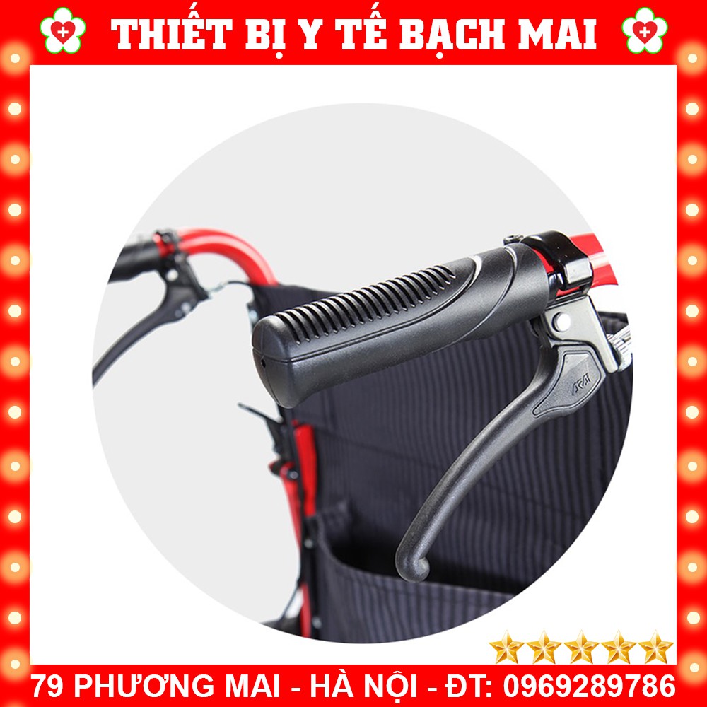 Xe lăn tay Nhôm tiêu chuẩn, với kích thước ghế ngồi 16 inch - phù hợp với vóc dáng người Châu Á.