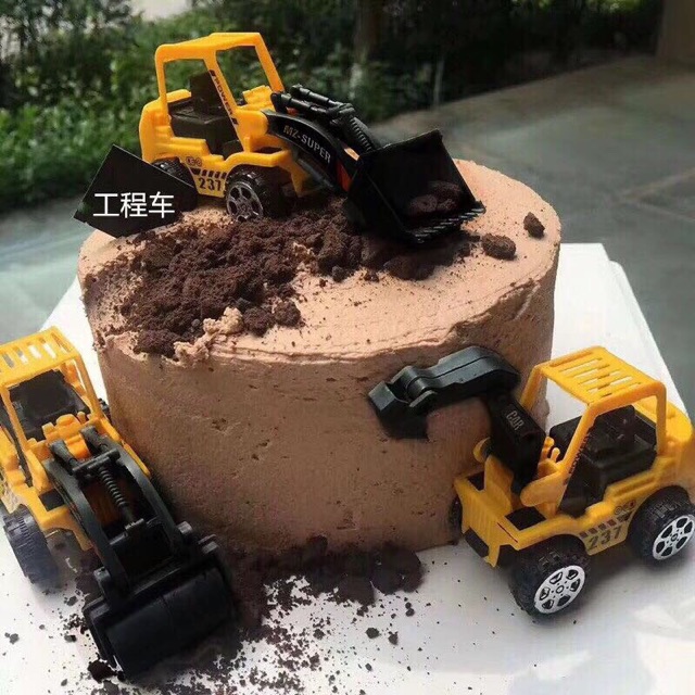 Giới thiệu Bộ xe máy xúc máy cẩu trang trí bánh kem (6 chiếc), làm đồ chơi cho bé