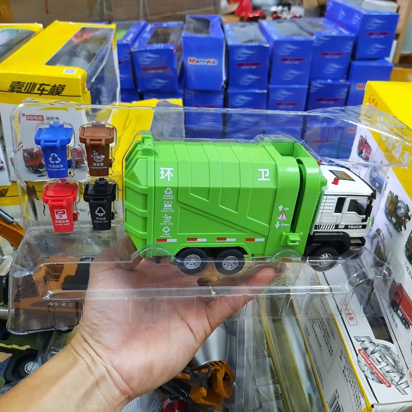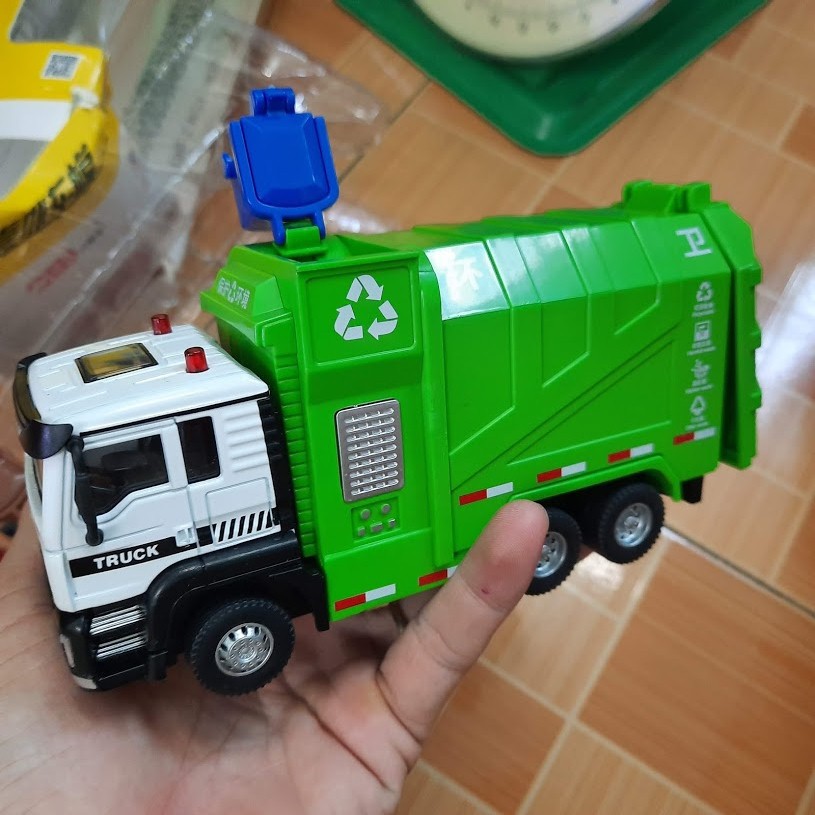 Mô hình Xe chở rác 1:50 xe bằng hợp kim và nhựa có âm thanh và đèn- Mô hình tỉ lệ 1:50