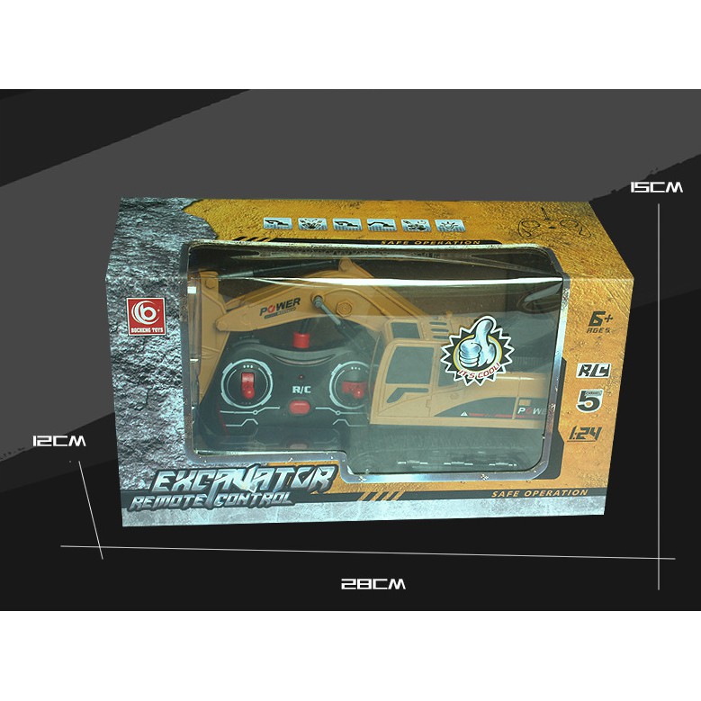 Chức năng: Tiến, lùi, rẽ trái phải, múc gầu( 2 chiều), nhạc(bật-tắt), Kèn, Tự tình diễn(auto demo)