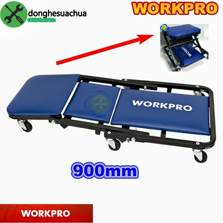 Giới thiệu Xe nằm làm việc WORKPRO W111005 có bọc nệm màu xanh xe dài 900mm