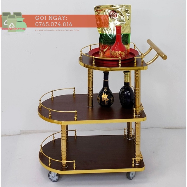 Xe phục vụ rượu là 1 trong những sản phẩm không thể thiếu trong nhà hàng, khách sạn. Sản phẩm tuy mới có mặt trên thị trường không lâu nhưng đang được rất nhiều khách hàng tin dùng sử dụng vì kiểu dáng sang trọng và thiết kế vô cùng gọn nhẹ.Đặc điểm xe đẩy phục vụ rượu: