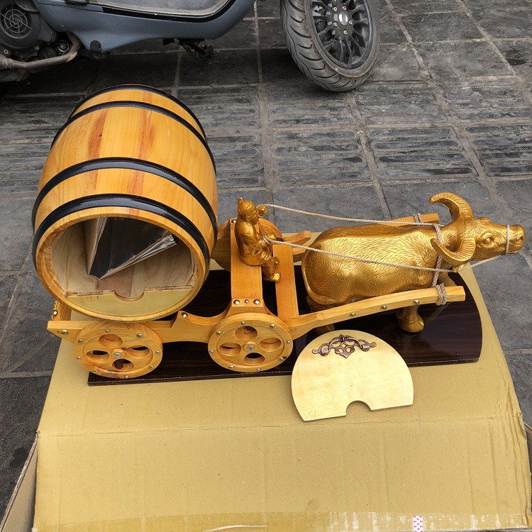 XE TRÂU VÀNG KÉO BÌNH ĐỰNG RƯỢU, SONG MÃ KÉO XE QUÀ BIẾU TẶNG - QUÀ TẾT NĂM TÂN SỬU 2021