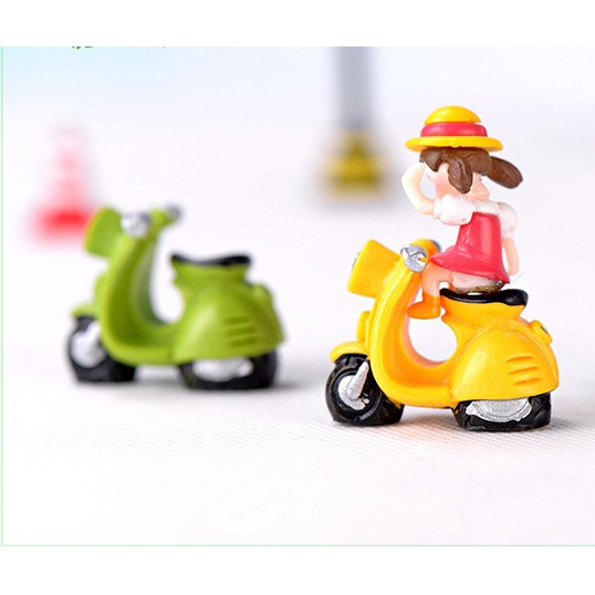 Xe vespa , decor trang trí tiểu cảnhmàu xanh, vàng