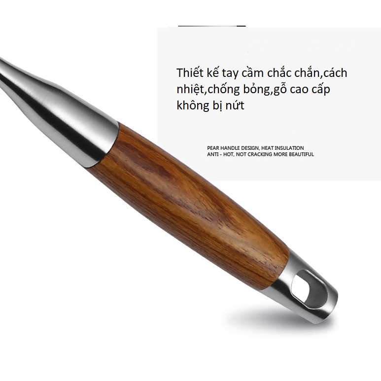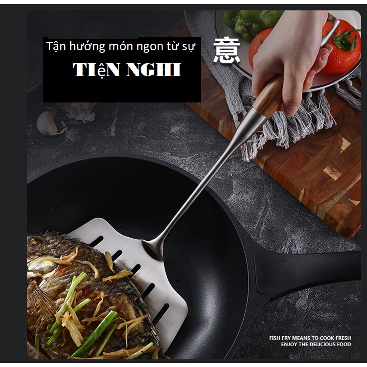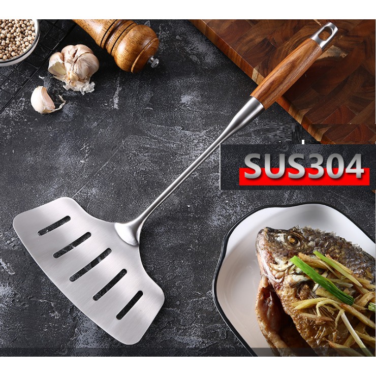 Xẻng chiên cá chất liệu inox 304 tay cầm bọc gỗ chống nóng, dùng lật cá,lật bít tết thuận lợi không vỡ cá,