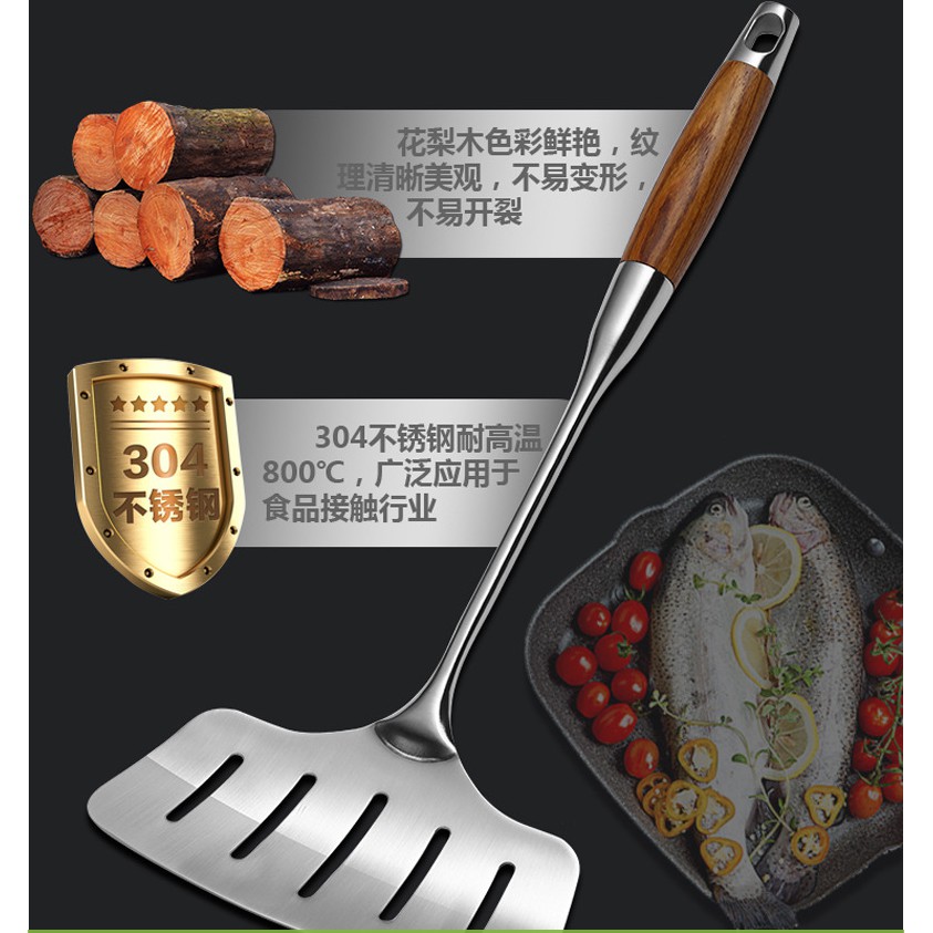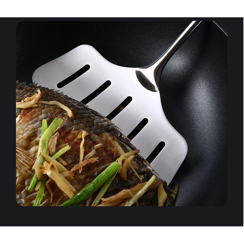 Nhà cửa & Đời sống > Dụng cụ nhà bếp > Cây vét bột & đồ gắp thức ăn || Xẻng chiên cá chất liệu inox 304 tay cầm bọc gỗ chống nóng, dùng lật cá,lật bít tết thuận lợi không vỡ cá,Còn hàng