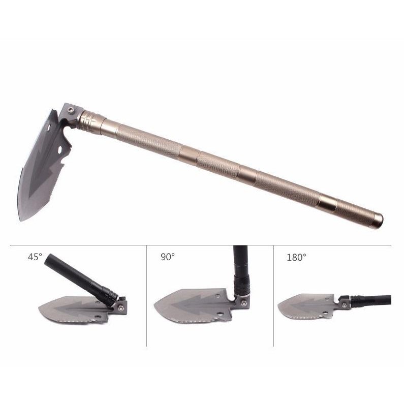 5.Xẻng có thể gấp 90 độ thành cuốc, trên lưỡi có một bên là lưỡi dao, một bên là răng cưa tùy chọn để sử dụng.
