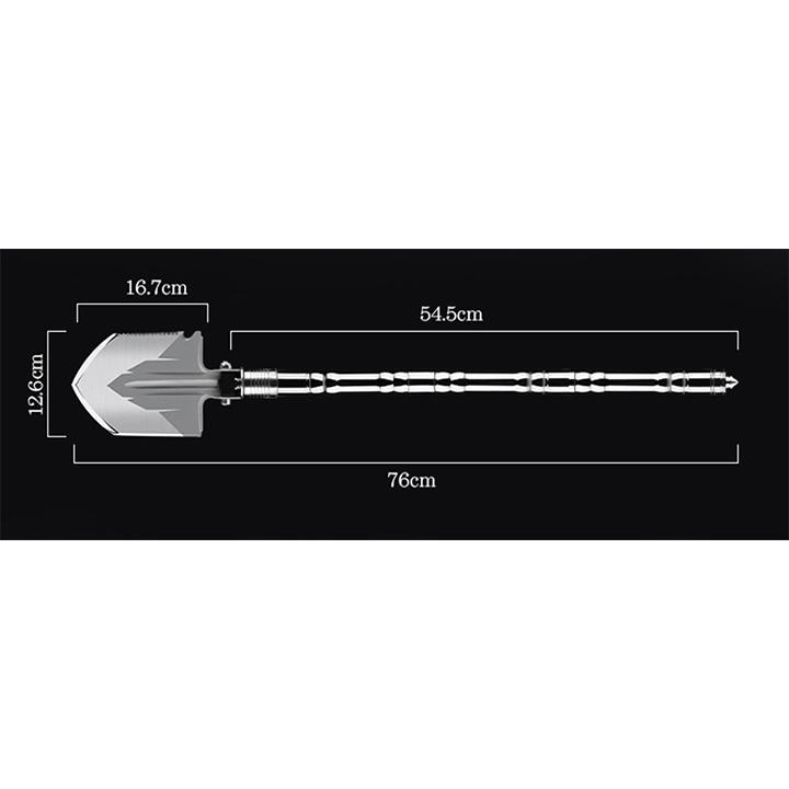 + Mở ra: Xẻng dài 76cm, lưỡi xẻng: 16.7*12.6 cm