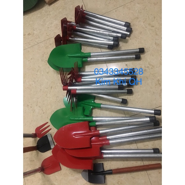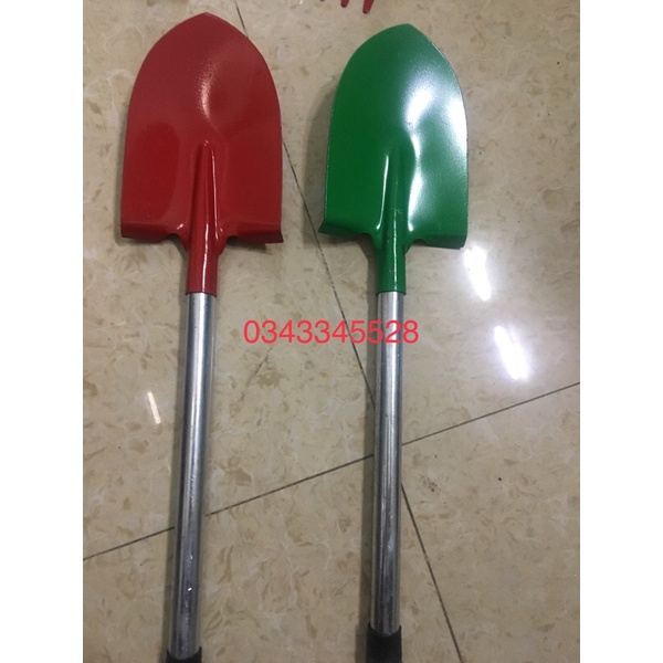 - xẻng xanh đỏ cán sắt: bản rộng 15cm dài 50cm