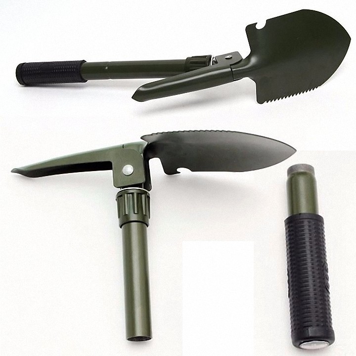 🔰 Xẻng có thể gấp 90 độ thành cuốc, trên lưỡi có một bên là lưỡi dao, một bên là răng cưa tùy chọn để sử dụng
