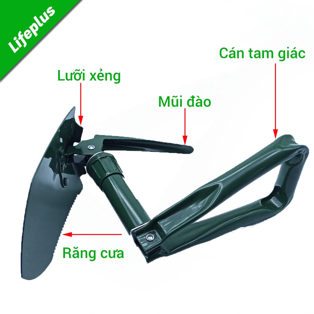 Xẻng gấp công binh cán tam giác làm từ thép hợp kim cao cấp phủ sơn tĩnh điện với độ cứng cao, chịu lực và chịu nhiệt tốt. Đây là dụng cụ được tích hợp 3 chức năng: cưa, đào, xúc trên cùng một sản phẩm. Xẻng gấp công binh đa năng phù hợp cho các hoạt động du lịch bụi, cắm trại, đi phượt, chăm sóc cây cảnh, làm vườn.Làm từ thép hợp kim sơn tĩnh điện với độ bền cao, cứng rắn, chịu được lực va đập mạnh