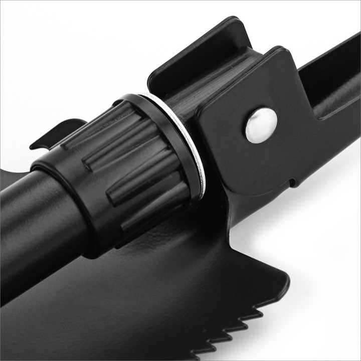 Xẻng gấp đa năngXẻng gấp đa năng là phụ kiện cực kì tiện dụng cho các chuyến du lịch, cắm trại, dã ngoại, làm vườn. Cán xẻng bọc cao su giúp thao tác cầm nắm thêm chắc chắn, chống trơn trượt. Cuối cán có la bàn giúp bạn chủ động xác định phương hướng khi đi phượt, dã ngoại. Sản phẩm bao gồm 4 chức năng cơ bản: xẻng, cuốc, cuốc chim, mở bia và cưa. Với thiết kế tiện lợi, bạn chỉ tháo rời xẻng ra 2 khúc, gấp lại và cất gọn vào bao đựng tặng kèm.
