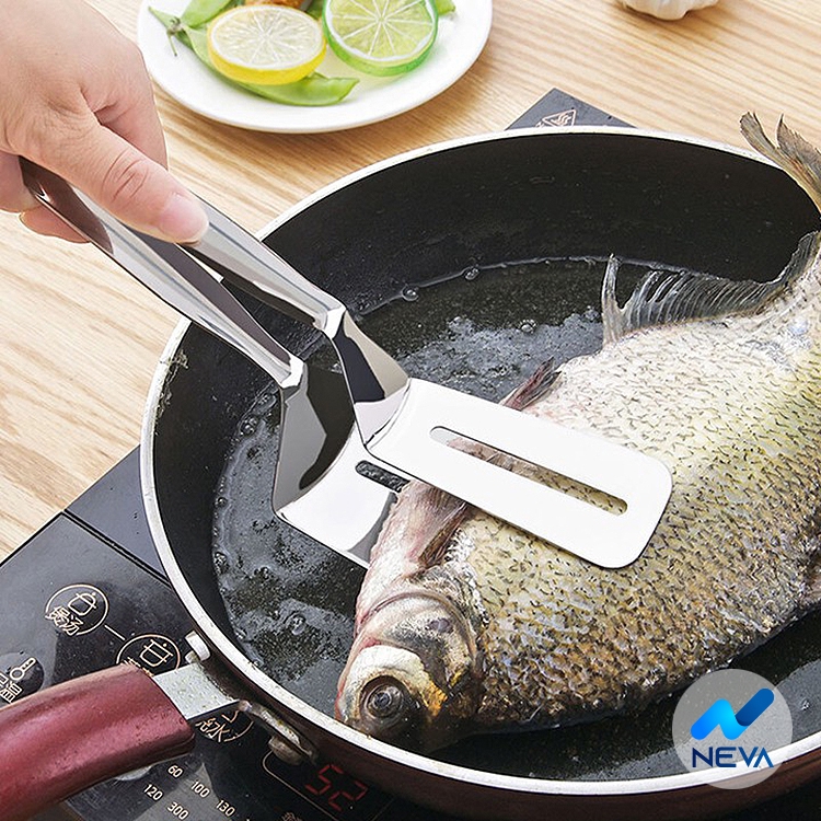 – Với thiết kế thông minh, kẹp gắp chuyên dụng cho các món chiên rán như cá rán, thịt nướng, bít tết,... mà không lo nóng hay bỏng tay