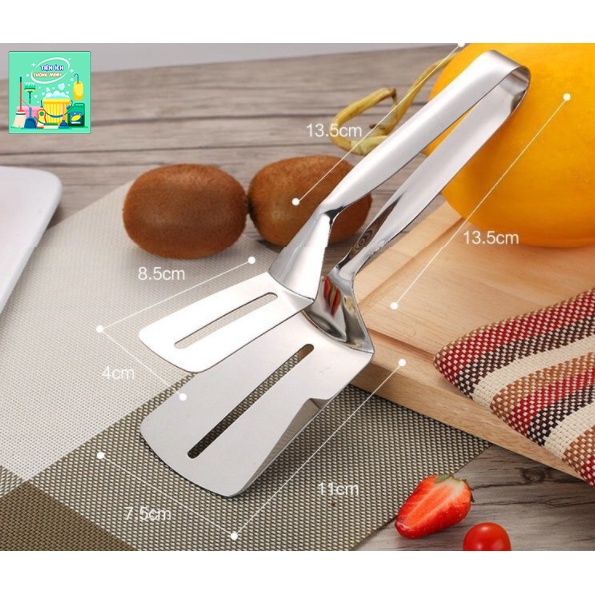 Giới thiệu Xẻng kẹp đồ chiên rán, dụng cụ lật mặt đồ ăn. Kẹp inox gắp thức ăn chống nóng -TT1247