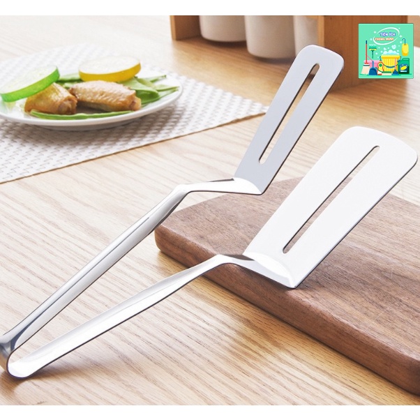 TT1247- Xẻng kẹp đồ chiên rán, dụng cụ lật mặt đồ ăn. Kẹp inox gắp thức ăn chống nóng-----------------------------