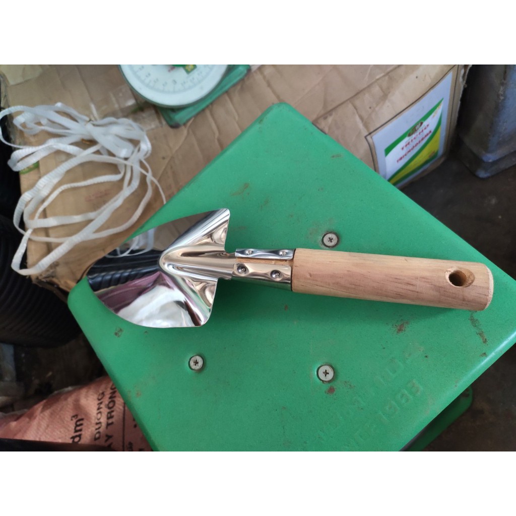 Xẻng thép không gỉ có cán bằng gỗ ,êm ái khi tháo tác là dụng cụ sân vườn, dùng trong việc trồng rau, hoa kiểng,
