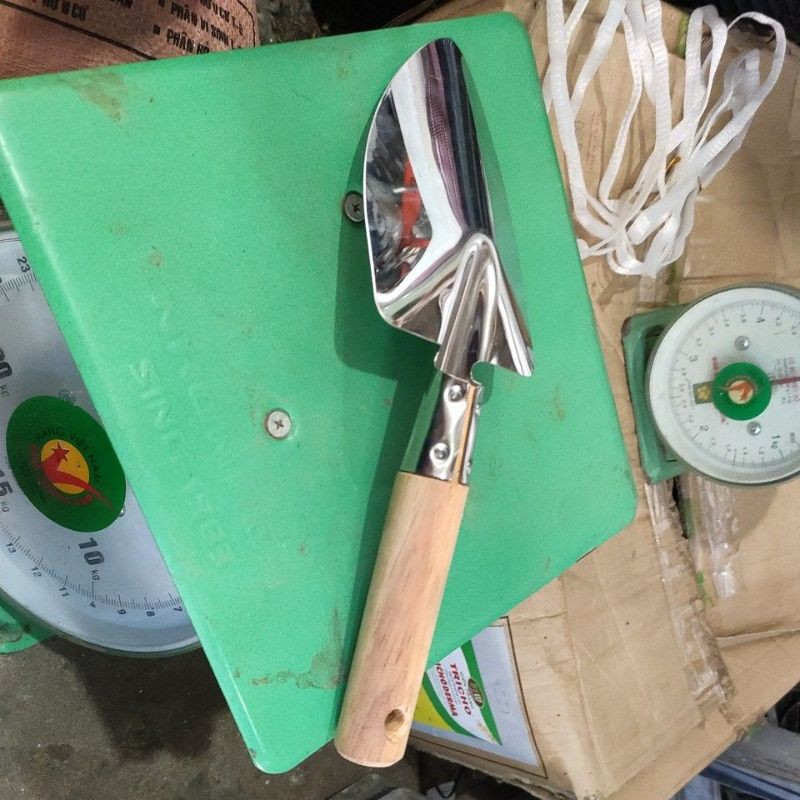 Xẻng thép không gỉ (inox)có cán gỗ nhẹ nhàng, êm ái khi tháo tác dùng trong việc trồng rau, hoa kiểng,
