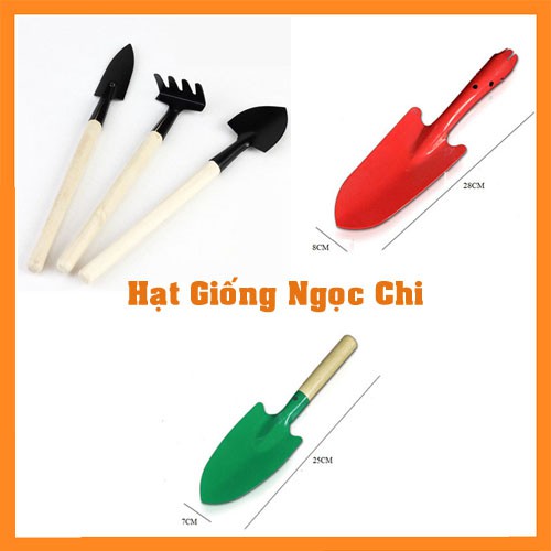 3. Combo bộ dụng cụ 3 món làm vườn mini + xẻng tay cầm gỗ