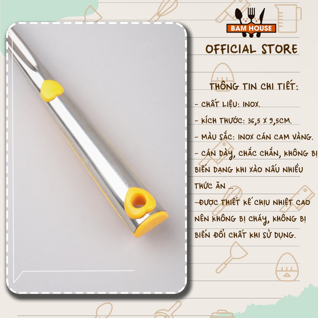 Xẻng lật chiên xào đồ ăn Bam House loại lớn cán bọc nhựa cam vàng inox cao cấp XCD01 – Fuki24