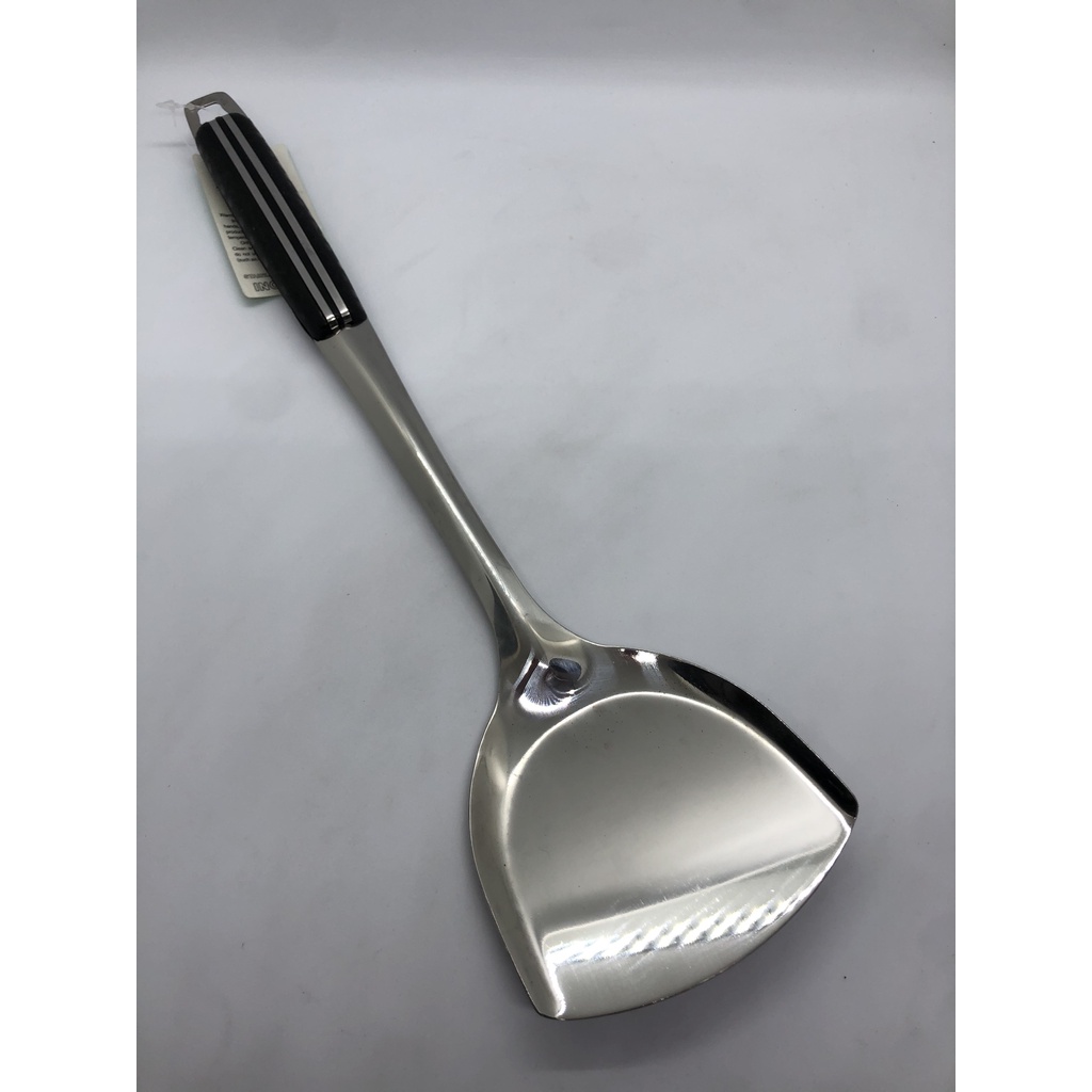 Nhà cửa & Đời sống > Dụng cụ nhà bếp > Cây vét bột & đồ gắp thức ăn || Xẻng lật chiên xào đồ ăn loại lớn inox 304 cán đen - sạn xào thức ăn inox tiện lợi - sạn cán đenCòn hàng