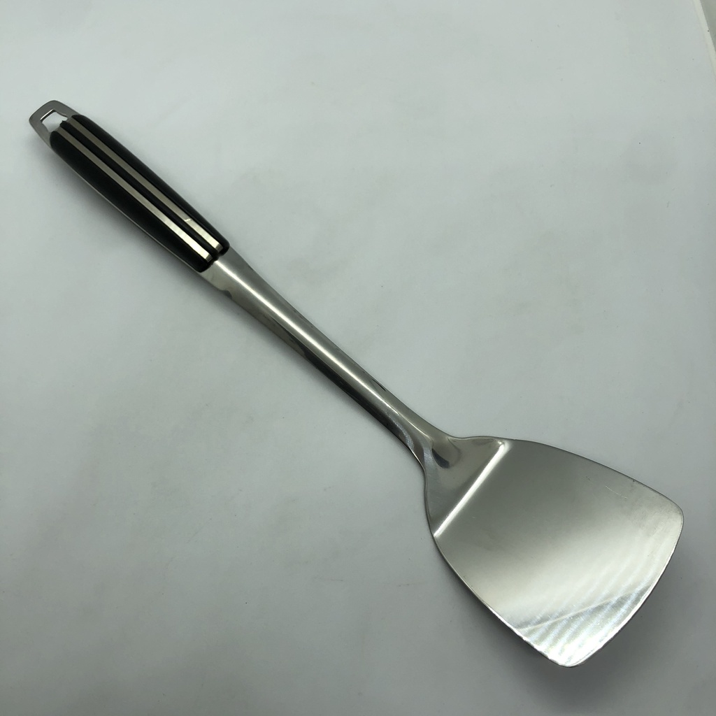 Xẻng lật chiên xào đồ ăn loại lớn inox 304 cán đen - sạn xào thức ăn inox tiện lợi - sạn cán đen