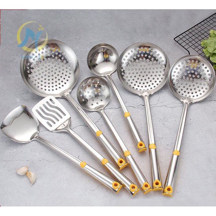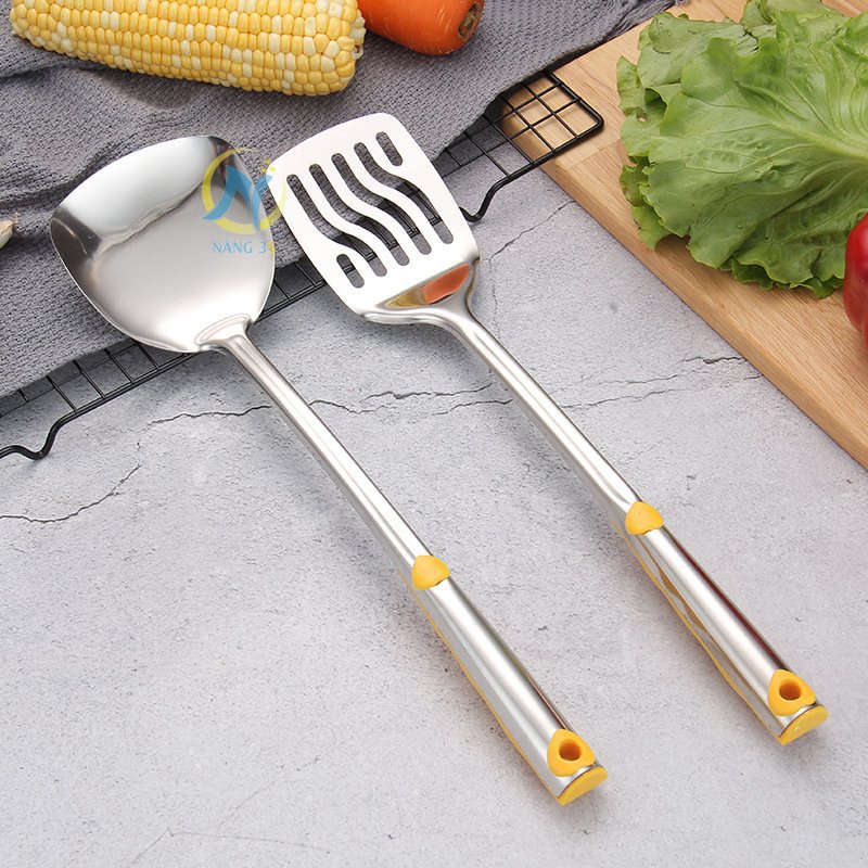 Nhà cửa & Đời sống > Dụng cụ nhà bếp > Cây vét bột & đồ gắp thức ăn || Xẻng lật đồ ăn chiên rán cán vàngCòn hàng